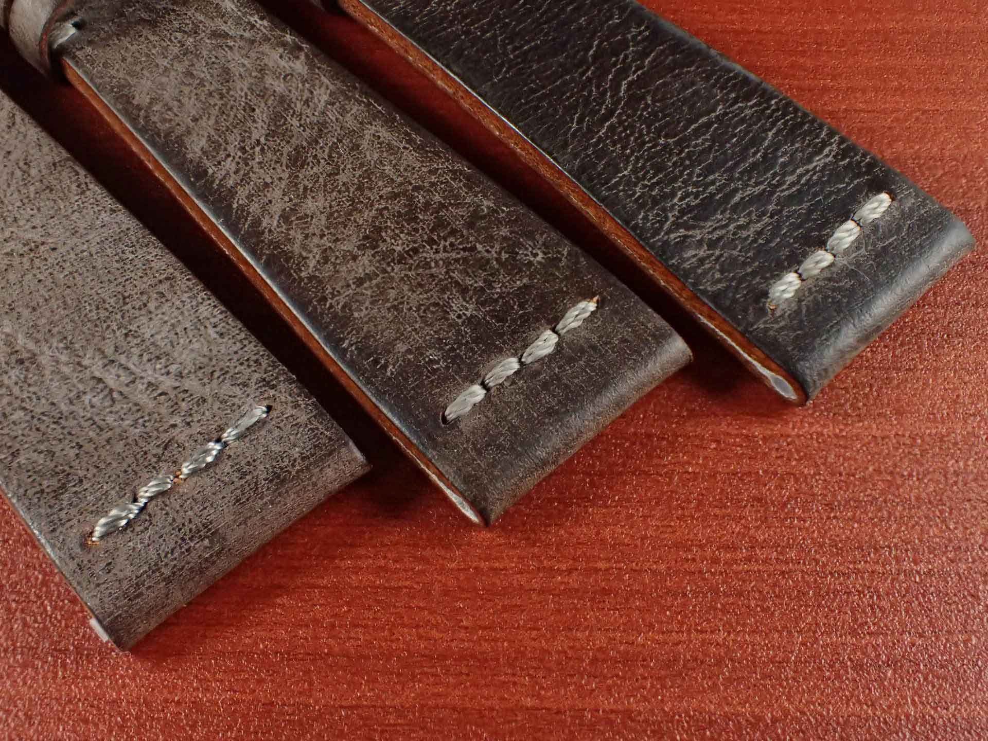 This belt was manufactured using a new mold. With a sophisticated shape, it has a more sporty shape. The thickness is 3mm flat to suit a sporty watch with a voluminous feel. The stitching is hand-stitched and has a single letter that complements the shape of the belt.