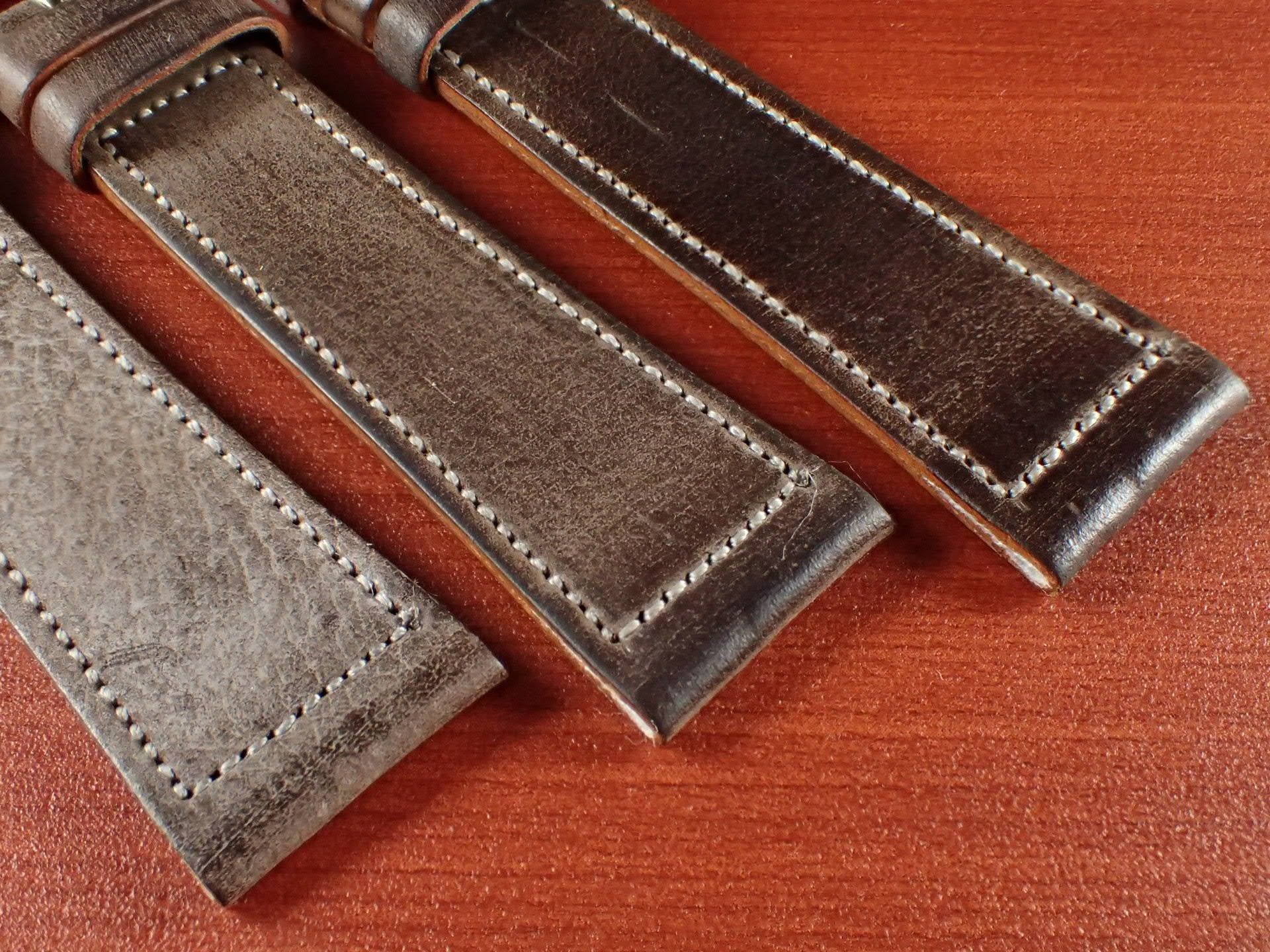 We use leather called ``ALASUKA'' made by La Perla Azzurra, a tanner certified by the Italian Vegetable Tanned Leather Association.