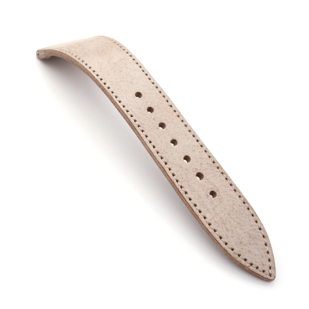 A great strap with refined aging; I have had mine for a little over a month, combined with the Bund pedestal. The lighter color has mellowed into a buttery tan color, with softness that conforms easily to my wrist. Feels sophisticated, but a bit sporty, and great for everyday wear.