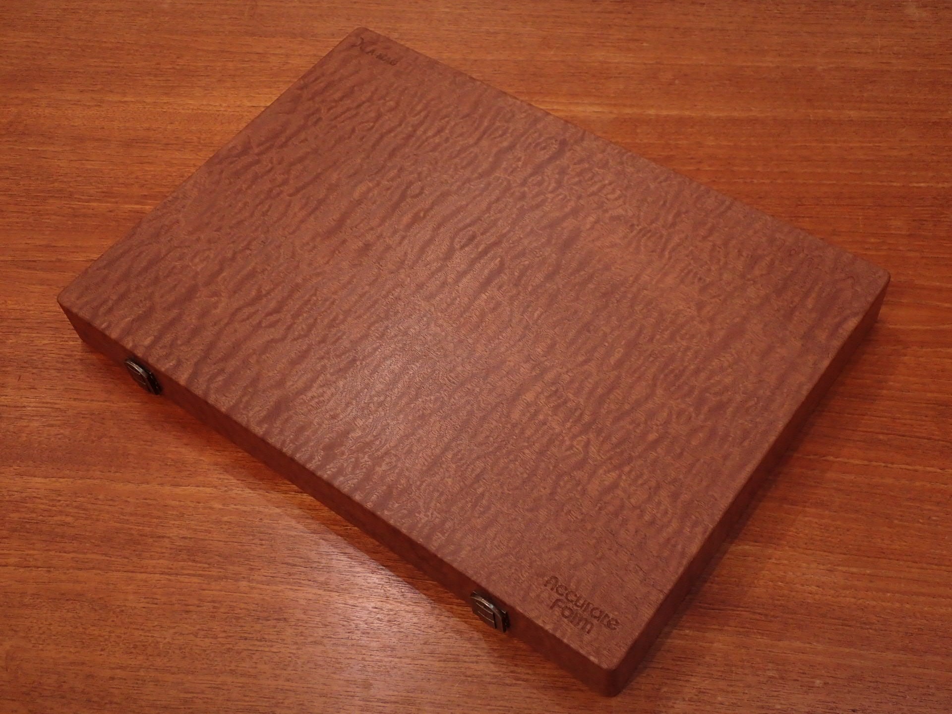 As this is a case for storing luxury goods, we believe that a sense of luxury is essential, and we use veneers of precious wood to match the wood grain. I was particular about it. We have prepared Claro walnut and Sapele curly wood, both of which have distinctive wood grains. The surface is coated with drip-proof matte oil to prevent water from seeping in as much as possible.