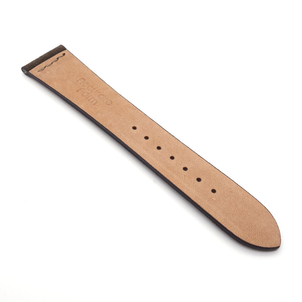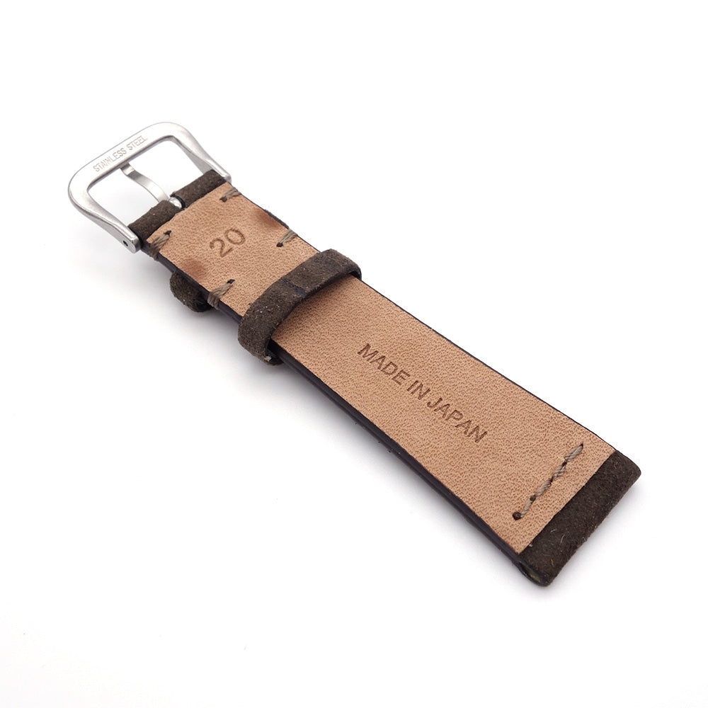 This belt is made from the leather of the KUDU, a bovid that is widely found in Africa. This leather is suede leather manufactured by Charles F. Stead, a long-established tannery founded in 1904 in Leeds, England. For the backing material, we luxuriously used Latigo from Horween, an American tanner. The thickness is approximately 3mm, making it slightly thicker. The stitching is a single letter design that looks great on both dress watches and sports watches. A supple and easy-to-use leather belt with a suede look.