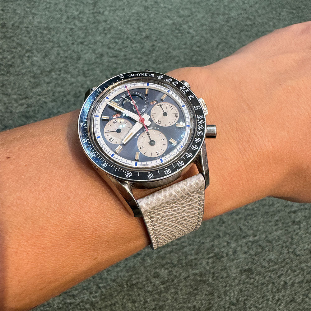 DAUPHIN is a calf-embossed leather made by French tanner DEGERMANN. This is a high-quality leather that is used to create products by a famous French maison and an Italian luxury leather goods manufacturer. The male calf leather is finely embossed and has a moderate hardness. Leather is a highly durable material that is also used for bags. For the backing material, we used ZERMATT from the same manufacturer. This is also a high-quality leather that has been treated to be water-repellent, feels very nice to the touch, and is luxurious, but it is the perfect leather for the backing material of strap.