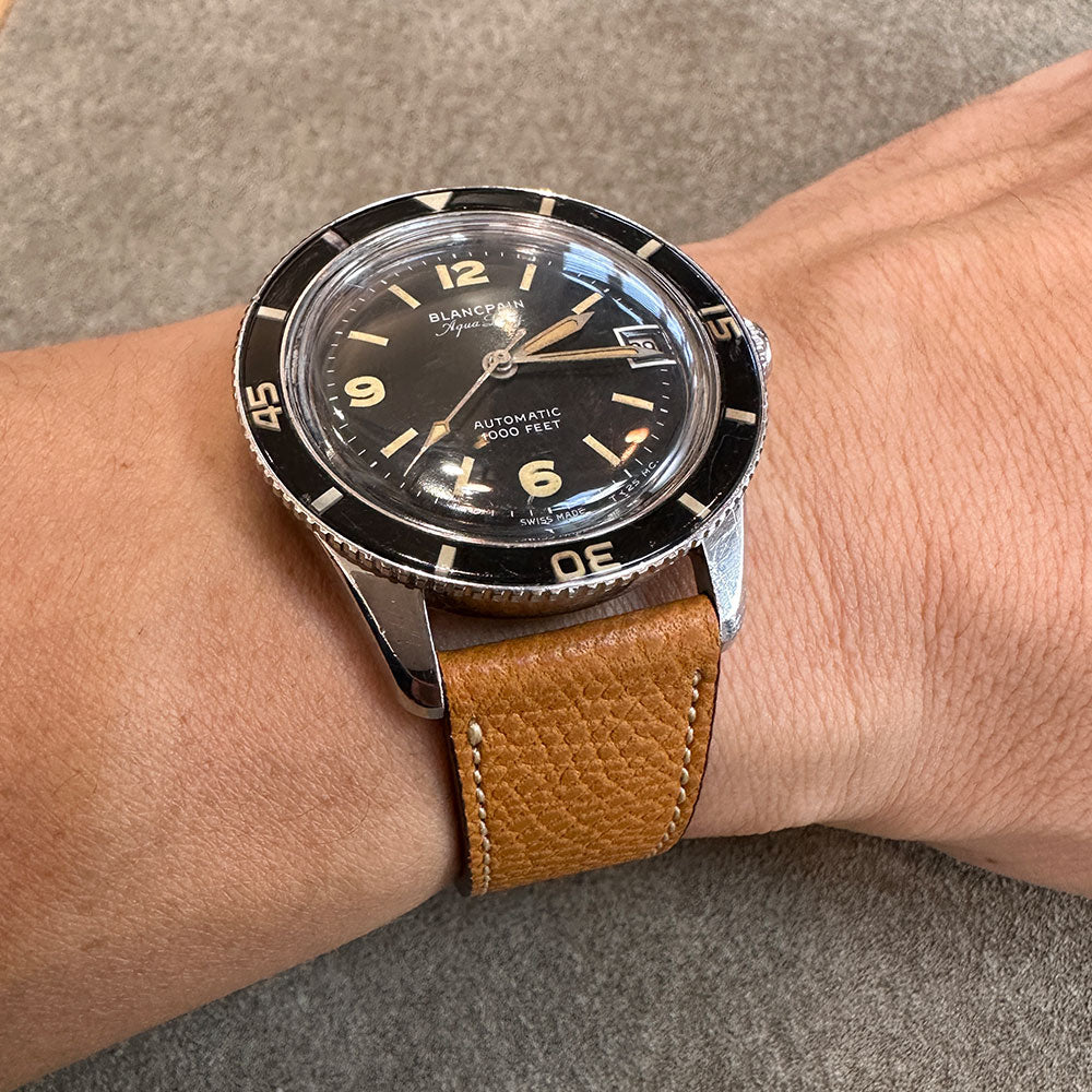 DAUPHIN is a calf-embossed leather made by French tanner DEGERMANN. This is a high-quality leather that is used to create products by a famous French maison and an Italian luxury leather accessory manufacturer. The calf leather is finely embossed and is characterized by moderate hardness. Leather is a highly durable material that is also used for bags. For the backing material, we used ZERMATT from the same manufacturer. This is also a high-quality leather that has been treated to be water-repellent, feels very nice to the touch, and is luxurious, but it is also the perfect leather for the lining of a strap.