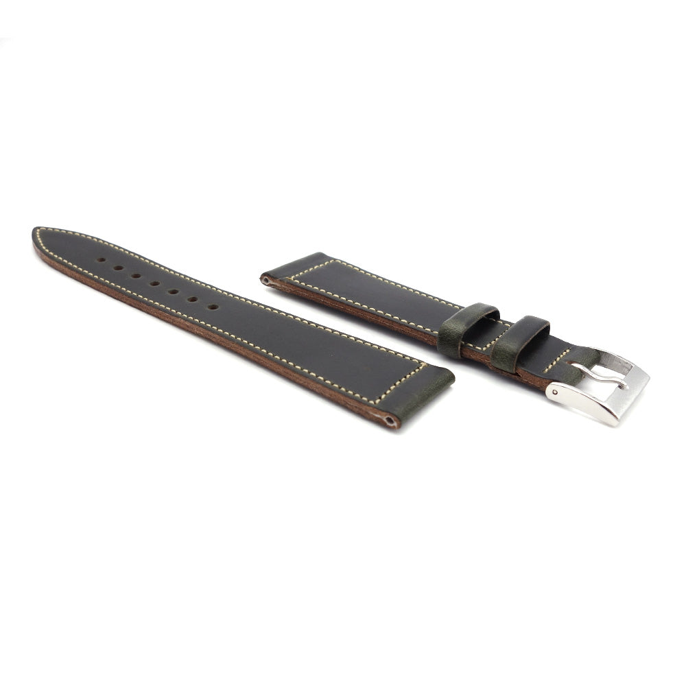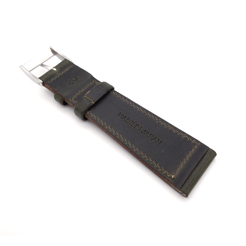 Created using Horween Chrome Excel. ``Chrome Excel'' is manufactured by Horween in the United States for the uppers of work boots, etc. Currently, it is manufactured in 10 colors, but this one was made in green. The natural color makes it an excellent match for antique watches.