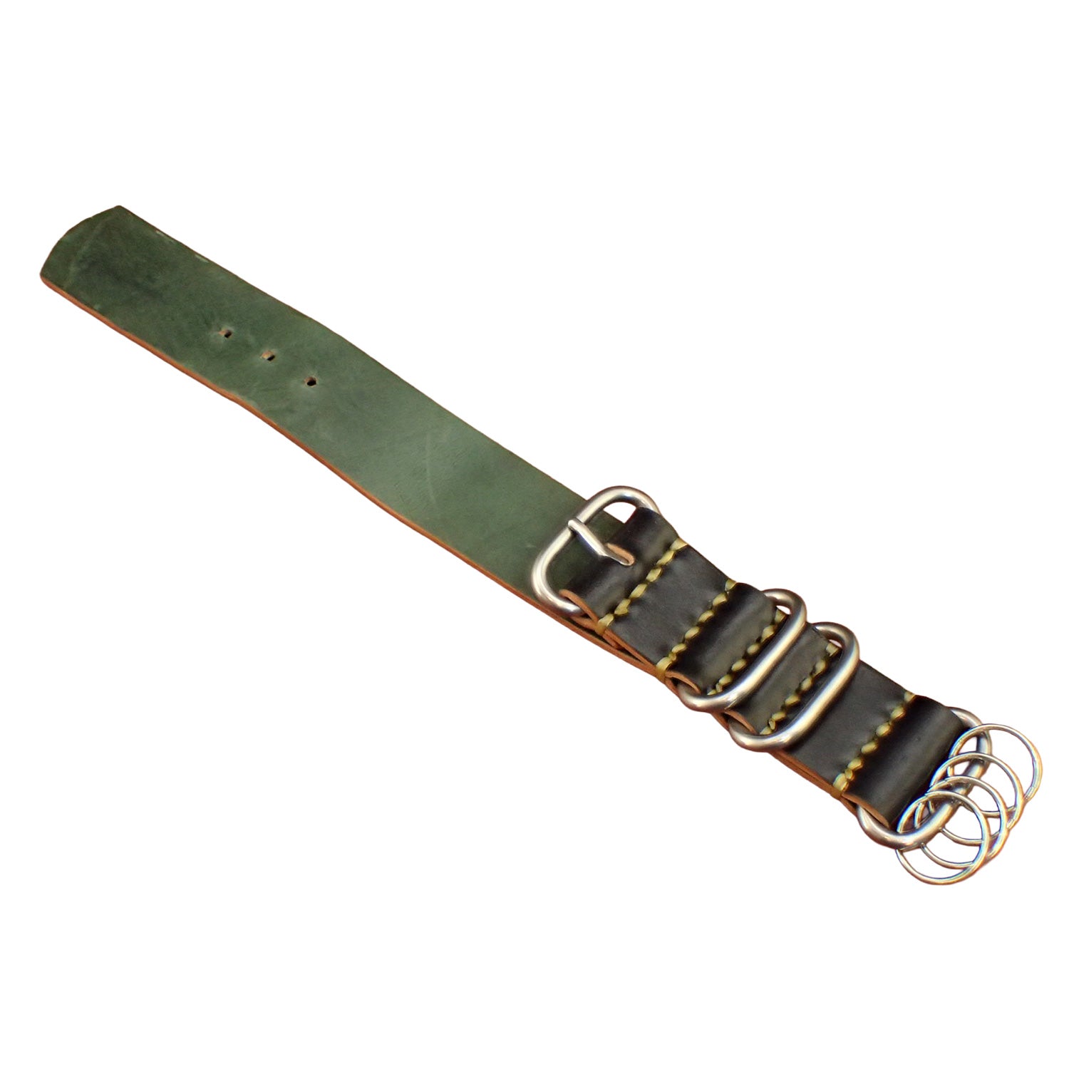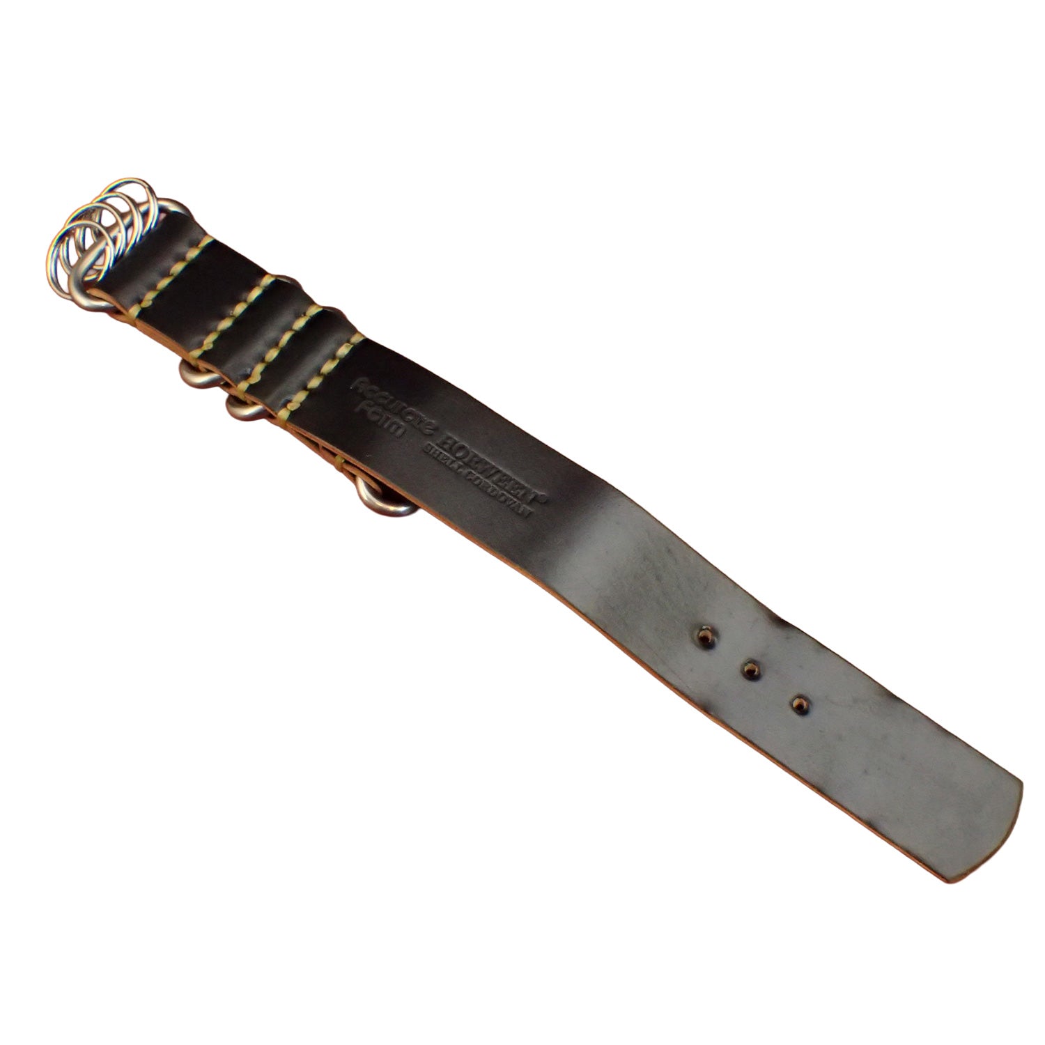 Designed with both style and usability in mind, this keychain incorporates the hardware and silhouette of Accurate Form’s original NATO strap—bringing our signature craftsmanship directly into the product. It is made from a single piece of leather with no glued layers, allowing you to fully appreciate the natural beauty and depth of the material. Each piece is hand-stitched with ultra-thick sinew thread, giving it the unique character that only handmade leather goods can offer.