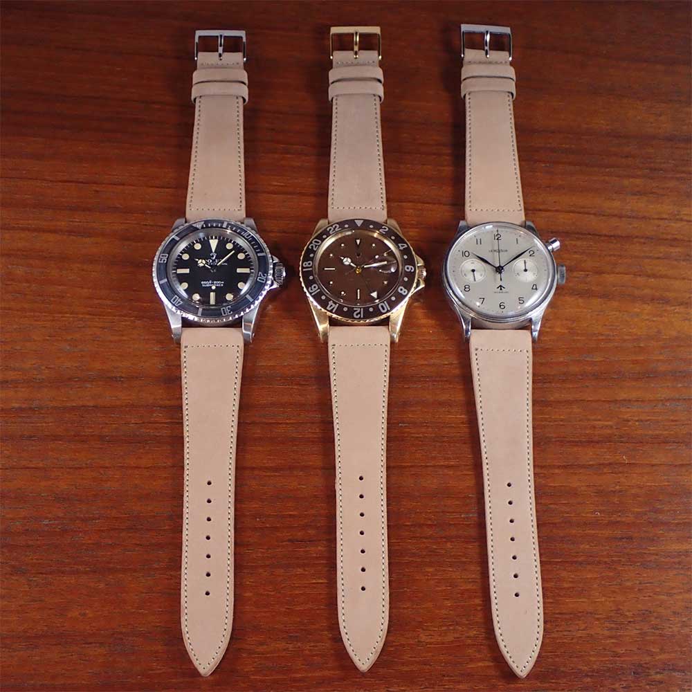 Masayuki.I 以前からヴィンテージを多く取り扱う時計店経由で数本購入させていただいておりますが、革の種類もバラエティ豊かさでまず殆ど全てに対応するサイズ展開があり、それぞれの革の性質をいかしたそれぞれの厚み、ステッチワーク、側面の処理がとても考え込まれていて洗練されているように思います。