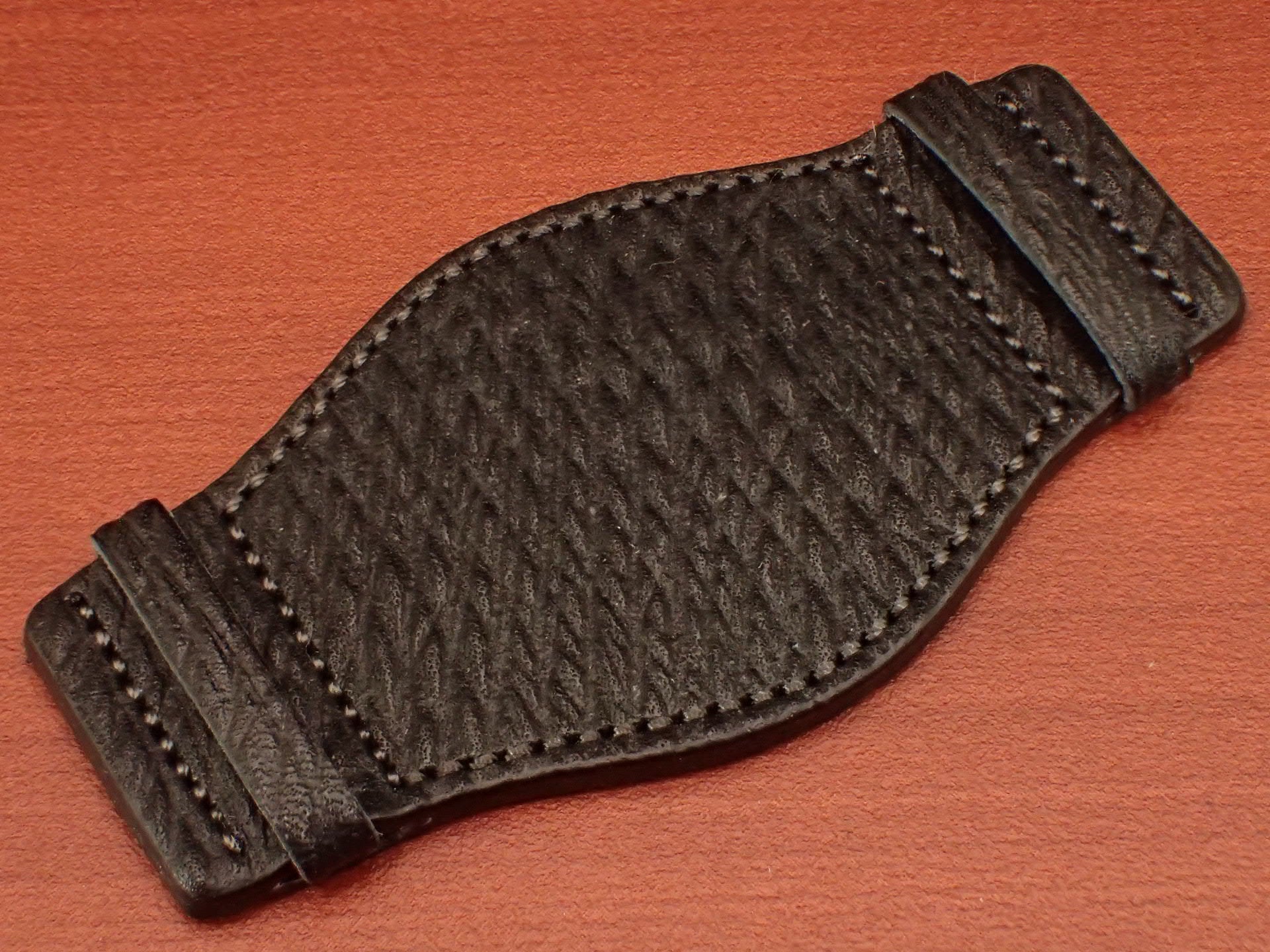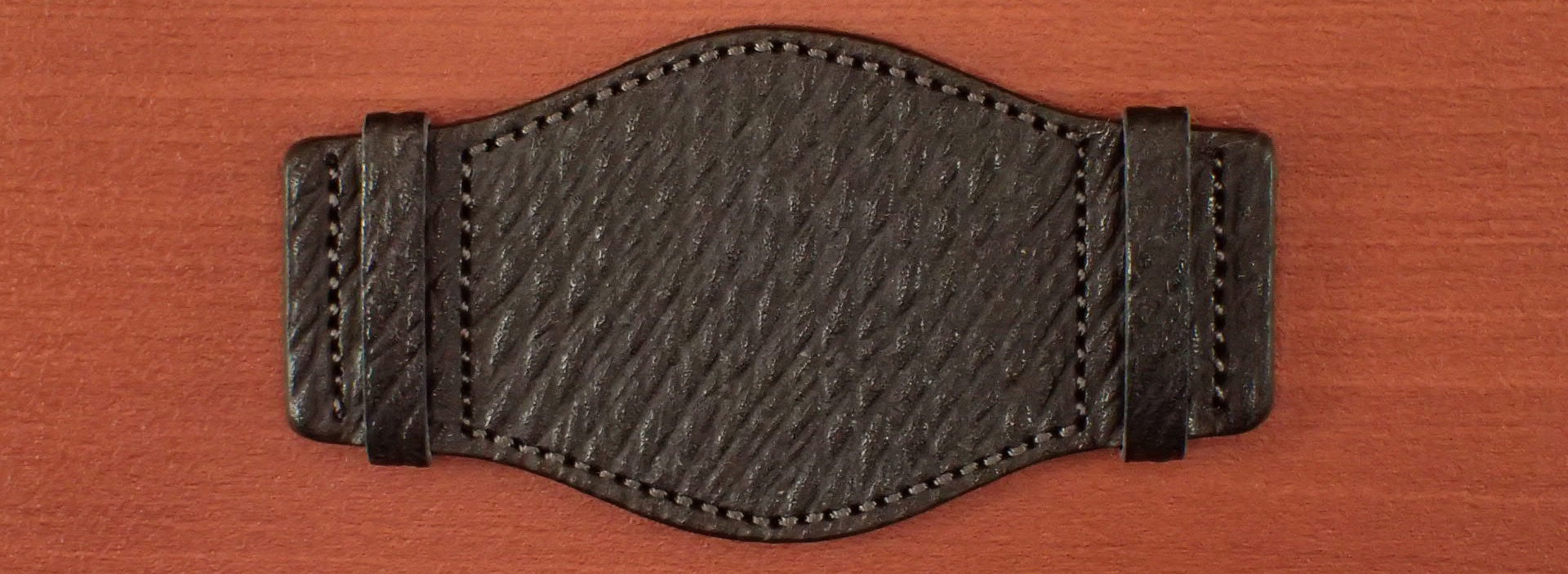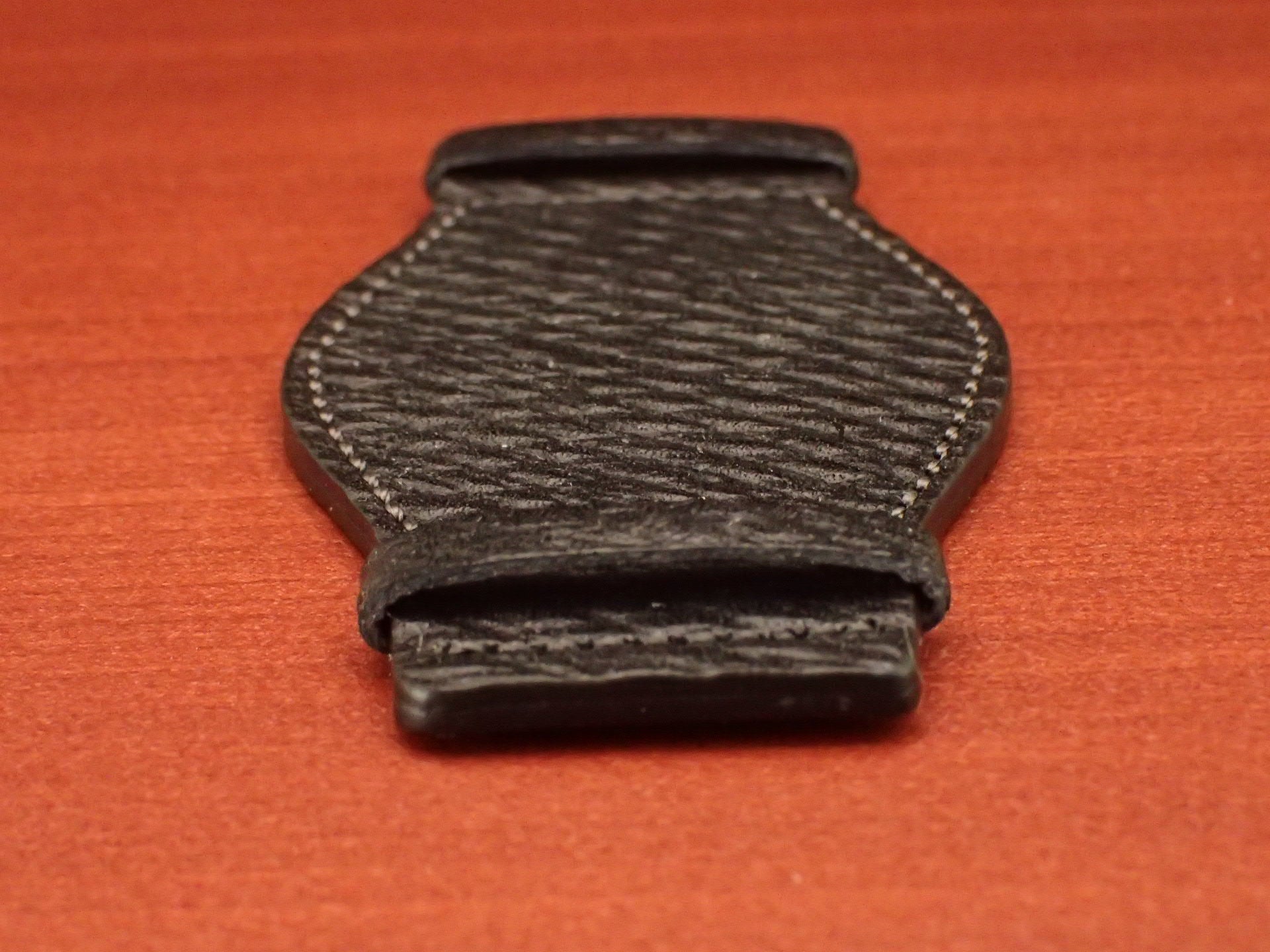 時計を汗や傷から守ることに重点を置き、あまり主張しないデザインで作成しました。しかしながら、台座のループが良いアクセントとなり、違う素材や色を合わせても面白いのがこのアイテムです。