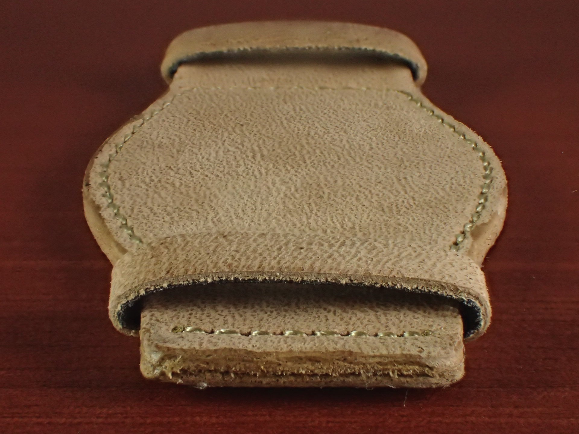 Leather made by Horween, a tanner in Chicago, USA.Latigo is made from cowhide leather, tanned with natural vegetable tanning, and oiled with plenty of oil and fat ingredients.The raw leather is thick, about 4mm thick.In addition, it is a high-quality specification made only from the benz part, which is dense and has little stretch among leather.The beige I used this time is a tanned leather that has a smooth texture similar to nubuck, and the more you use it, the more it tastes.