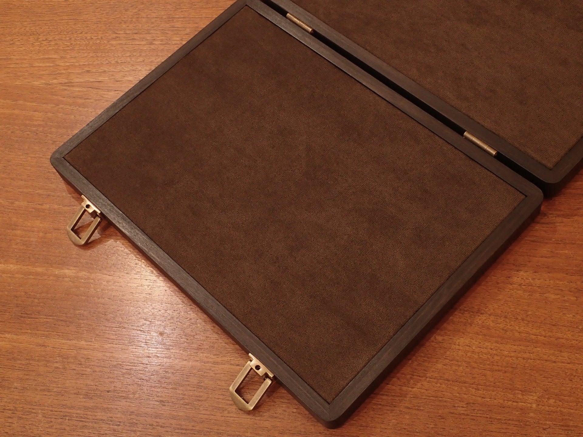 The upper and lower lids have the same thickness, so when opened, it can be used as a high-quality tray. The urethane inside is covered with suede-like fabric. Convenient for business negotiations and offline meetings.