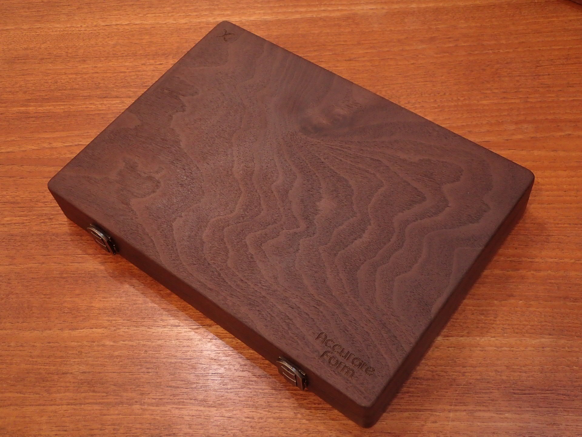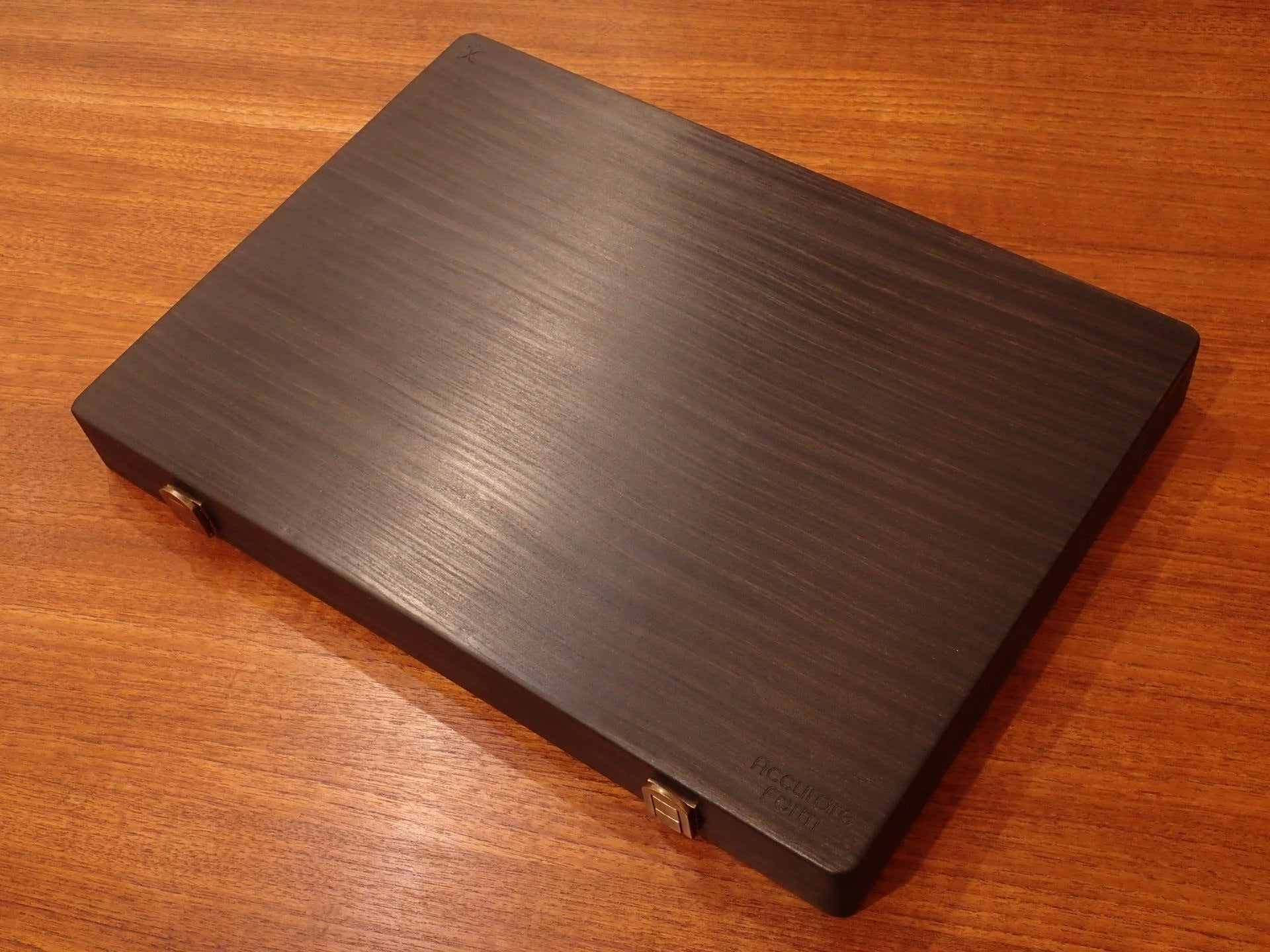 Luxury product Since this is a case for storing items, we thought that a sense of luxury was essential, so we used precious wood veneer and paid close attention to the grain of the wood. We have prepared Claro walnut, Sapele and Agathis. Those of which have distinctive wood grains. The surface is coated with drip-proof matte oil to prevent water from seeping in as much as possible.