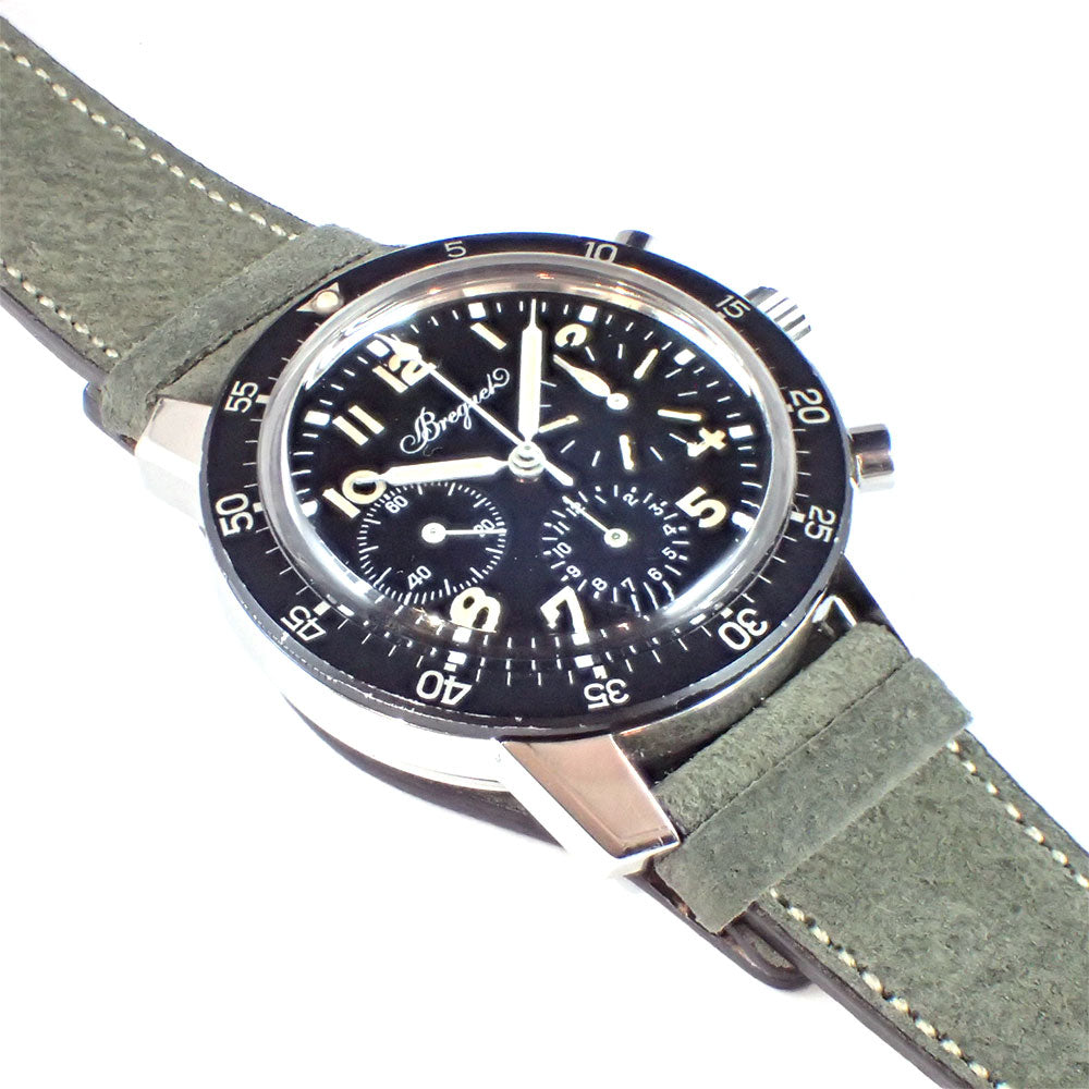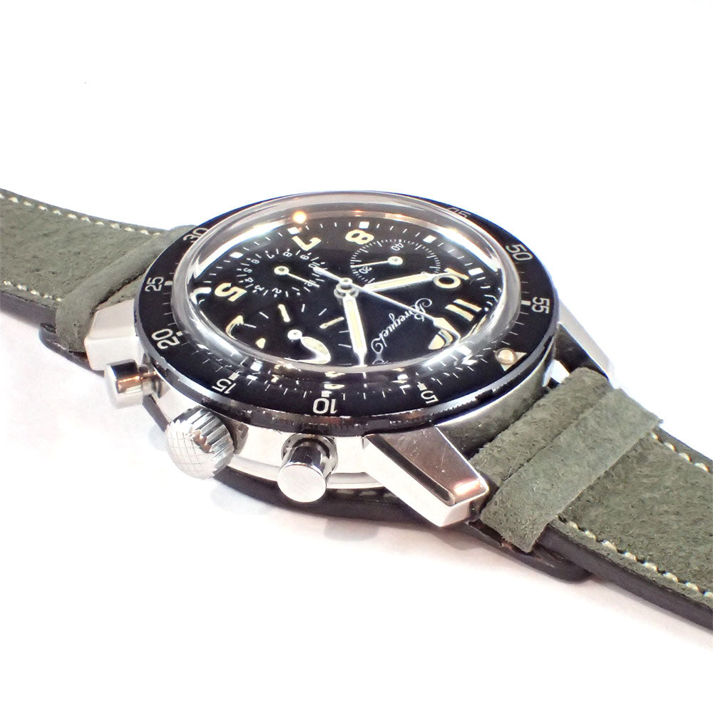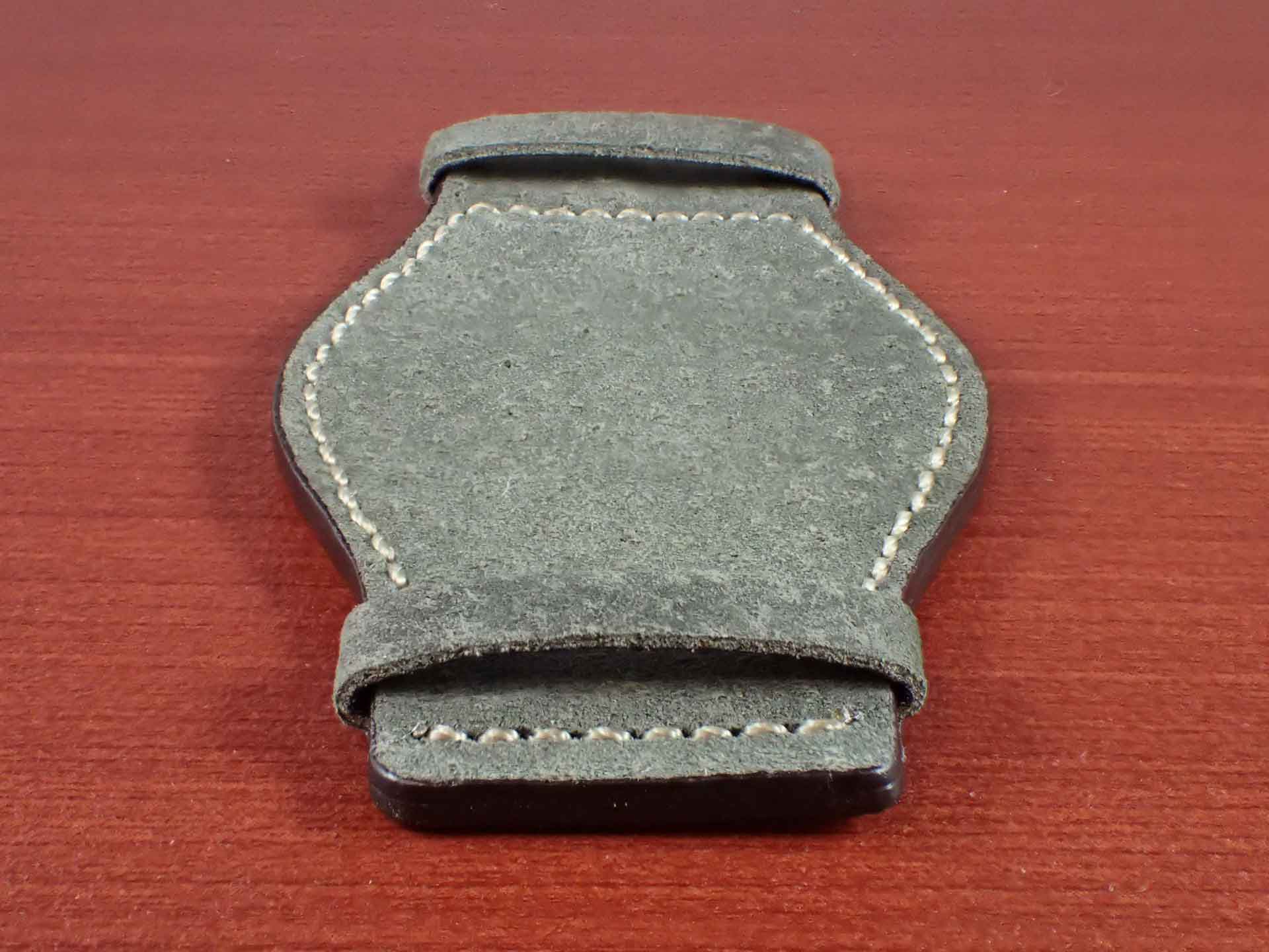 時計を汗や傷から守ることに重点を置き、あまり主張しないデザインで作成しました。しかしながら、台座のループが良いアクセントとなり、違う素材や色を合わせても面白いのがこのアイテムです。これまで、台座は受注生産という形でオーダーを受けてきましたが、服のように複数のサイズ展開を行うことで、その時計にピッタリと合う台座を安価でお求め頂けるものです。当店のレギュラー商品のベルトと同じ仕様とし、サイズだけでなく、主要な数種類のカラーで展開しますので、後から買い足してもマッチングします。
