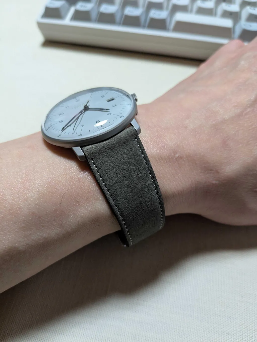 ヌバックの革バンドは初めてです。風合い肌触り色合い、何よりその柔らかさというか硬さは商品説明の通り至高の逸品です。弾力はあるも硬すぎず柔らかすぎずです。