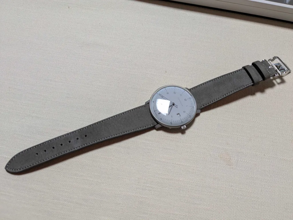 早速時計に装着して手首に乗っけてみたところ、時計本体が軽いってのもありますが空気をまとっていて仄かに存在を感じるつけ心地です。手首へのあたりが柔らかいのですね。このつけ心地は裏材と革そのものの弾力がそろわないと出せないんだろうと素人ながらに思いました。